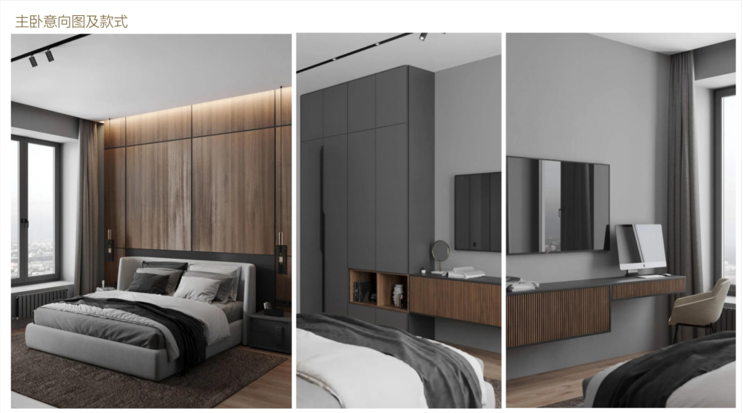 主卧套房设计打造使衣帽间与睡眠区毗邻,既保证两个区域的独立性又尽可能地相连,形成L形衣帽间。L型衣柜相比一字型衣柜收纳收纳力更强,空间利用率更高,规划得好,完全能抵上一个衣帽间功能。